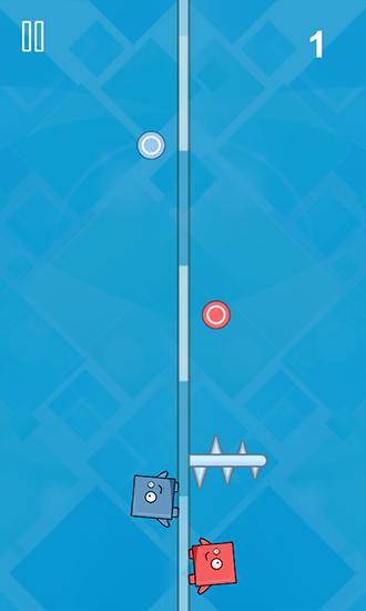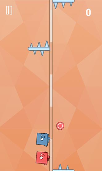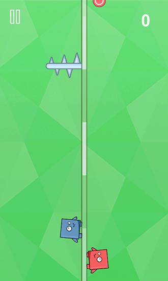 Control 2 funny heroes running up the track that goes through the center of the screen. Avoid hitting obstacles. In this fun game for Android you'll need to demonstrate excellent reflexes and check the speed of your fingers. Heroes can run both along opposite sides of the track, or on one side. Your task is to just move characters from one side to the other in time. Use this to avoid hitting sharp obstacles that appear here and there.