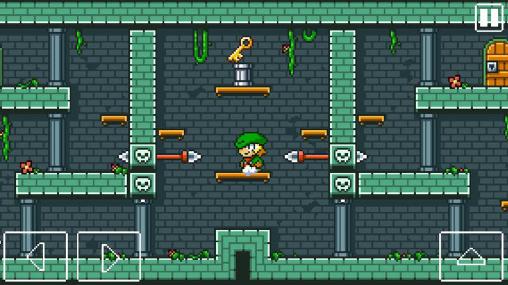 Guide the fearless treasure hunter through dangerous dungeons full of various traps. Look for hidden keys. Embark on an adventure with the fun hero of this game for Android. Guide the adventurer through the dark dungeons. Jump along platforms. Avoid sharp spikes, saws, fire torches, and other deadly traps. Move boxes and interact with other objects to make way for the hero. Find treasure and keys to the door that leads to the next level.