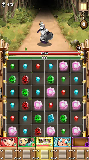 Move magic crystal with notes in them along the screen. Match 3 and more same ones to explode them. Gather a team of adventurers and explore the amazing worlds of this game for Android. On each level you'll meet a new opponent. Sort magical crystals in the rhythm of the music. Match rows of same crystals so your heroes can attack when they disappear. The more crystals you destroy, the stronger your character gets. Use bonuses.