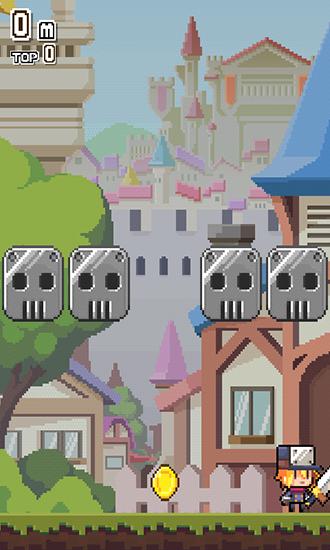 Help the fearless hero go up into the sky dodging the falling blocks and fighting various bosses and other enemies on the way. The foul lord of blocks kidnapped beautiful princess. The hero of this game for Android needs to rise from the castle to the sky to defeat the villain. Tap buttons to make the hero jump higher and higher. Collect coins and various bonuses along the way. Fight huge bosses crushing them with your sword or other weapons. Climb above the clouds and even into space. Unlock new heroes.
