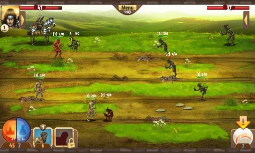 Head an army and fight hordes of orcs attacking human empire. Command troops in battle, use different abilities of your warriors and defeat them. Defend the country from the forces of evil in this game for Android. Choose a hero to lead your army. This can be barbarian, guard, monk, or mage. Every leader has their own unique abilities that can be improved. The choice of the leader for your army determines the tactics that will bring you victory. Analyze your enemy to select a successful strategy. Use magic to turn the tide of battle.