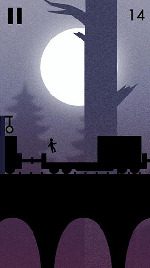 Help a brave hero run along the train roofs. Jump from train to train and avoid crushing into different obstacles on the way. The protagonist of this game for Android is running along the roof of the train at night. Help him get as far as possible, jumping from car to car. You'll find cars with a variety of cargo like grain, trucks, etc. Be careful not to let the hero fall from a train or face many dangers like bats, guards, etc.