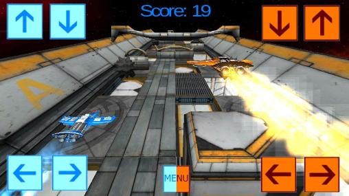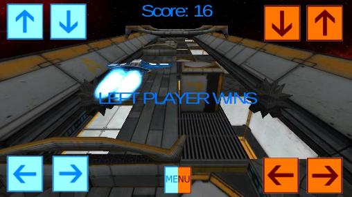 Control racing space ship using antigrav engine. Fly it along difficult track in space. Show off your piloting skills, take part in dynamic space race in this Android game. You can play with a friend using a single device, or practice in single player mode. Fly your ship along the beautiful space routes, avoiding collisions with various obstacles on the way. Look for the shortest path to the finish. Try to slow your opponent down.
