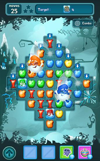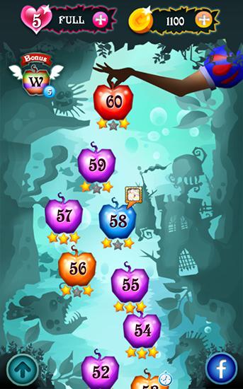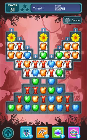 Swap colorful apples and match 4 or more of them. Get magical apples and a variety of bonuses. Travel the enchanted forest and save dwarfs in this game for Android. Uncover the mystery of the Snow White who turned to be an evil sorceress. Match different apples and explode them with various spells. Free the dwarves who were trapped and frozen with evil magic. Try to complete levels using as little moves possible. Numerous bonuses will help you.