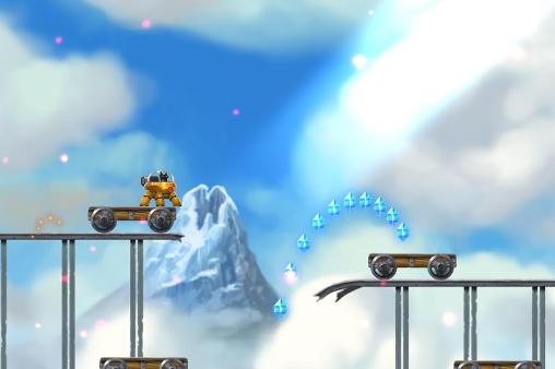Help a cat who's lost on distant planets return home. Control a futuristic robot and guide it through the difficult tracks. Explore amazing worlds of this Android game. Guide the futuristic robot that can jump very high. Jump onto platforms and over obstacles. Help the brave cat fight 5 huge bosses. Don't forget to collect the glowing crystals. You'll need them to unlock bonus levels. Look for all cat's friends and help them get home.