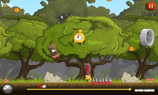 Help the log escape from the forest that's being cut by the greedy lumberjacks. Shoot the hero out of the catapult. This game for Android takes you to the forest that people are destroying. The hero needs to escape from sharp saws and axes. Forest dwellers like beavers will help you. Fire the hero at sharp trajectory and make sure that it doesn't hit circular saws or other deadly traps. Collect various bonuses and gains along the way, they'll allow the hero avoid troubles.