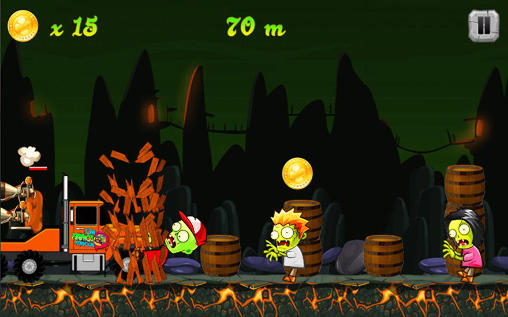 Guide the hero armed with powerful weapons. Go through locations full of hordes of zombies and other monsters. Overcome obstacles and defeat enemies. The whole world is engulfed in a terrible virus epidemic in this game for Android. You have to stop the epidemic killing all the zombies. Hero runs forward, clutching a gun in his hands. Tap left to make the hero jump, tap right to open fire onto the enemy. Jump over pits and traps, onto platforms. Pick up useful bonuses like different cars.