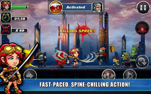 Help 3 brave heroes fight hordes of zombies who flooded this futuristic city after the zombie apocalypse. Destroy hordes of zombies using high-tech weapons and superpowers of your heroes in this Android game. Select a soldier armed with automatic weapons and a jetpacks, or fearless girl slashing zombies with her swords. You can also play as a scientist who has a strong acid and many other wonders of science in his arsenal. Improve abilities of your heroes and their equipment.