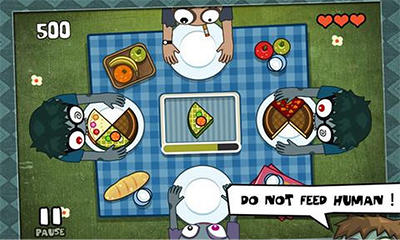 It is necessary to feed zombie as many pies as possible for the most minimum period. After you get 3000 points there will be a new level with more severe constraints.