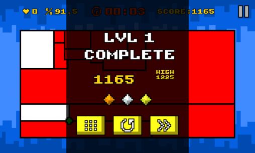 Control a medical nanorobot and clear the playing field from harmful bacteria. To do that you need to cut off parts of the playing field. In this Android game you move by moving your finger. To stop tap the screen. Slice off the fragments that have no bacteria. Be careful, when you move you become vulnerable. You can't stop on the playing field. Avoid enemies and obstacles like acid puddles. Pick up different bonuses. Try to get 3 stars for every level.