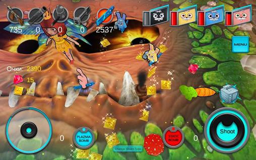 Control 4 cyborg bunnies who got to a space island. Defeat a variety of space monsters with powerful weapons. In this exciting game for Android you can control 4 bunnies at the same time. Each one is armed with a unique weapon. You can buy more powerful weapons for them. Move bunnies around the battlefield and fight off huge slugs, centipedes, and other space monsters. Help the brave bunnies survive in this space adventure. Develop and improve your heroes.
