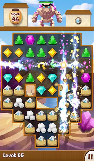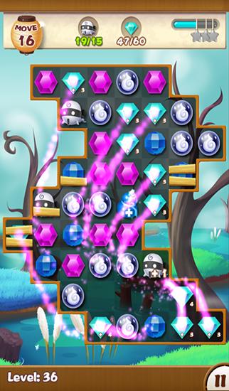 Help ninja collect magical jewels and defeat many monsters and bosses,and to do that you need to match same jewels. Blow up jewels combining them in this Android game. You can use such bonuses like a bomb that explodes jewels all around or a colorful arrow that destroys all the stones of the corresponding color. The shape of the playing field changes from level to level and reaching your goal becomes more difficult. Collect special gems to defeat powerful bosses in colorful battles.