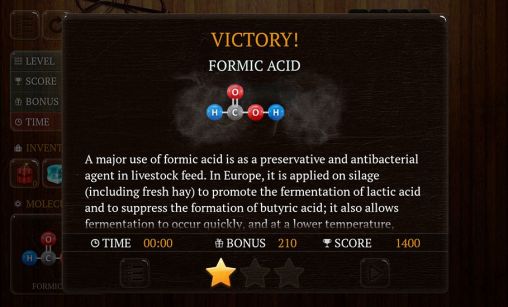 Push atoms by moving them in different directions to create molecules of different substances. Beat all the levels and recall all you know from chemistry classes. Train your logic and gain science knowledge in this learning puzzle game for Android. You can move atoms only vertically or horizontally. Atom moves til it hits an obstacle. Move atoms on a playing field full of obstacles, create a molecule shown at the bottom of the screen. Use different bonuses like dynamite, ice and teleport.