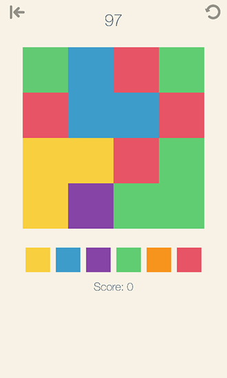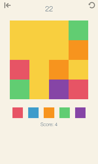 capture colorful tiles making all of them one color. Color in all of the tiles using as little moves as possible. Plan your moves a few steps in advance in this game for Android. If you finish the levels with 2 moves left you can unlock a bonus level. Choose colors of the tiles in the lower part of the screen. That way you'll paint the neighboring tiles with the color you select. The tiles on the screen can change shape and be a square, a circle, a rhombus or a hexagon.