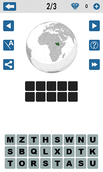 Guess different countries by their flags, geographical location, or the map of the country itself. Try not to make mistakes! In this game for Android you can show your knowledge of geography and learn names of all the countries of the world. Show off your erudition. Learn the countries of Europe, America, Africa, Asia, or Oceania. Look carefully on the flag or the country image on the screen. Spell the name of the country using using letters at the bottom of the screen.