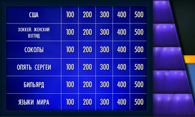 Llectual game based on the TV quiz Jeopardy!. In the game you are offered the table with themes and price of the questions. The higher is the price the more complicated is the question. You choose a subject and a price of the question and have to answer it in a set period of time. If you have no answer you loose the number of points equal to the price of the question. If your answer is correct you add the respective number of points to your score. The game is under development, but is quite playable. It is a must have for all the lovers of raking their brains.