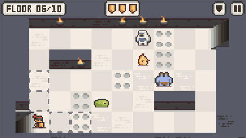 Guide the brave adventurer through the floors of this high tower full of different monsters. Avoid them and beware of traps. Help the hero of this game for Android get to the treasure, guarded by the evil dragon. But first you need to guide the adventurer through many levels of the tower. Each level is a little bit like a chess board. Plan your each move. Predict monster moves and actions. Try to use traps, available at each level against the monsters. The levels of the game are generated randomly.