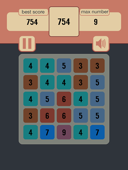 Combine same numbers on the screen to make the next number. Work on your math skills, logic and intelligence in this exciting Android puzzle game. You can match 2, 3, 4 or 5 same numbers on the screen at a time. After that you get new number that you can combine using same principle. Try to get the biggest number you can and set a new record.