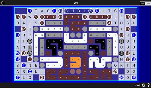 Find words in letters shown on the screen. Connect the letters of the same word with the help of thick horizontal or vertical colored lines. Demonstrate your attentiveness and knowledge of words in this game for Android. There is a net on the screen and there is a letter in each cell of that net. Circled letters mean the beginning or the ending of a certain word. Find words consisting of 3 and more letters. Connect them with a colored line. As soon as you find all the words you will see a picture made of the different colored lines.