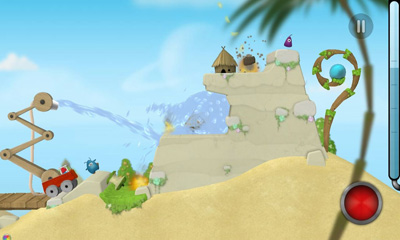 People of Earth decided to get rid of garbage, sending it to space on special towers. Once there was an accident on one of such towers and the burning garbage started pouring on houses inhabitants of the Titan, suspecting nothing. Your task is operating fire truck to set off fire, despite various obstacles, using physics of water.