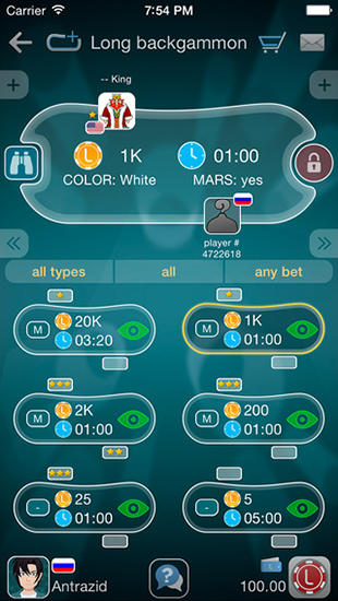 Play backgammon, an ancient game, that came from the East. Roll the dice and move your pieces on the board trying to get them to home. Try your hand at exciting duels with real players. In this game for Android you won't have to fight against the AI, you'll only play against real opponents, which makes the victory even more desirable. Regularly get bonuses for winning games and improve your skills. Take part in tournaments, defeat skillful opponents, and increase your rating.
