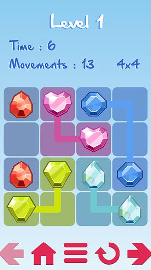 Exercise your logic and wits completing levels of this absorbing Android game. Try to complete a task as fast as you can. Lines between same gems can only be horizontal or vertical. Lines that connect different gems can't intersect. Follow these simple rules and complete more and more complex levels.