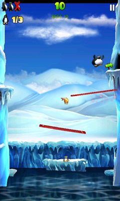 Uin Palooza game will tell you about the plight of the penguins. Your task is to help penguins to reach the caves where they will reside during the cold weather. An unexpected thing happened, the way is wrecked, and now it is blocked by chasms and the ocean. At some levels you will encounter fish that jump off the water. You will get the points depending on number of penguins you manage to take across and how many fish you catch. To take across the penguin, put a trampoline under it. You can regulate the slope angle of trampoline.