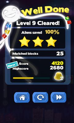 E Earth from the evil aliens who want to capture it and enslave humanity. The game is visualized as a puzzle, in which you will have to make a line of four identical blocks. And you have to make it the way so that aliens of the same colour were destroyed. You will have limited time for each level, so do not hesitate to act. During the game drag the blocks falling from the sky with the help of gestures; then rotate them so that you could use them effectively.