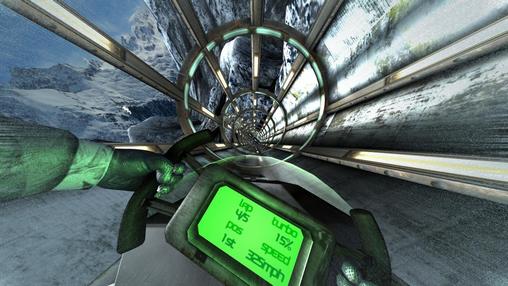 Participate in futuristic races in distant future. Drive at incredible speed through a winding tunnel. Tracks of this Android game go through cities, beautiful forests, volcanoes and high mountains. However, it'll be quite hard for you to examine the landscape, as there races are breathtakingly fast. Choose the optimal trajectory for multitude of turns. Only precise calculation and perfect reaction will let you leave 5 opponents behind you and be the winner of these dynamic races.
