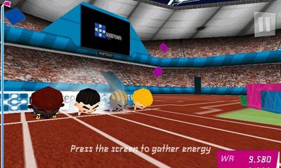 Game you will have an opportunity to create your own hero by yourself: match facial characteristic, the form of face and even improve his physical characteristics. And you will have to exert yourself in the stadium to be the first. The game is a little boring, as the competitions are held only in 100-meter sprint. But the graphics is just excellent: three-dimensional image and vivid design will make the game attractive. The sportsmen look strange enough: they are small and have short legs. But such flaws do not prevent them from showing good results. During the gameplay you will have an opportunity to change the appearance of your sportsman, his caste, improve the physical structure of his body. Gather strength and press the screen after you hear “Steady!†command. Remove your finger at the moment you hear a shot of a starting pistol. Your sportsman rushes ahead, and a power bar is displayed over his head. The bar consists of sectors. To gain speed you press the screen at the moment when the pointer reaches the certain sector. If you win, you gain generous prizes. But do not spend all of them at once, because the next race will require an entrance fee.