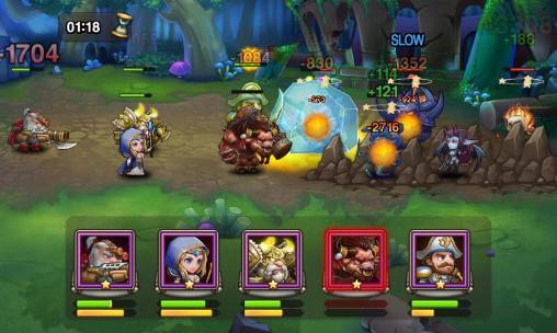 Create your own team of various heroes, strong monsters, and magical creatures with amazing abilities and skills. Save the fantasy world of this Android game from the forces of darkness. Lead your squad in battle against numerous enemies led by powerful bosses. Improve your heroes, level them up, learn new devastating skills. Improve your collection of characters, change up your party and create an unbeatable team. Test your strength on the arena and defeat players from around the world.