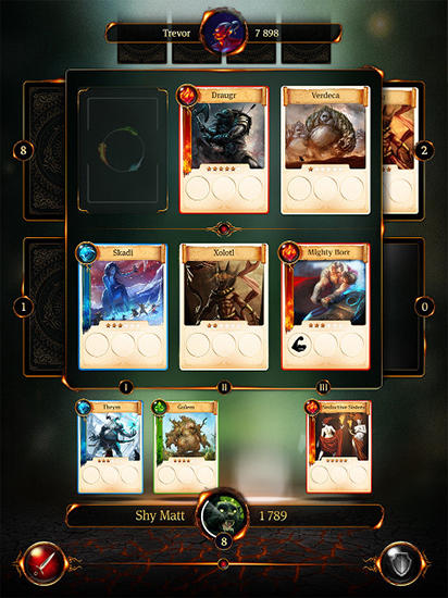 Collect cards of legendary heroes, ancient gods, mythical creatures and so on. Take part in card duels. Create new cards to enlarge your collection in this Android game. Study different skills and combine them to increase efficiency. All skills are based on one of 3 elements - Earth, fire and water. Develop your strategy and tactics talent, improve your level in repeated duels with friends. Win the battles and increase your rating, fight stronger opponents.