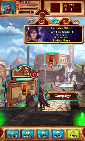 Collect cards with different heroes and mystical creatures. Explore dangerous lands and mysterious dungeons. Battle your enemies. Explore the wonderful world of this Android game full of secrets, mysteries, powerful magic and incredible mechanisms. Complete various tasks and get new cards with unique heroes into your deck. Upgrade and combine cards to make them stronger. Loot chests with rare cards and create an unbeatable decks. Come out to the arena and test your cards in battles with other players.