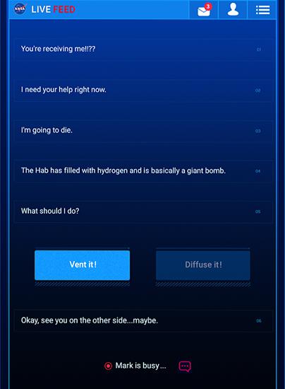 Help american astronaut who's stuck on Mars on his very own. Contact the hero and guide him to salvation. This game for Android is based on the story of the same name movie. As a result of an accident, an astronaut on a mission to Mars unable to return home. You act as a NASA specialist communicating with an astronaut. Send him valuable information and scientific information. Directs the actions of the hero. Help the astronaut find a safe shelter and wait for help from Earth.