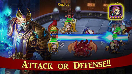 Lead an invincible party of legendary heroes and powerful bosses like Odin, Thor, Loki, Zeus, Athena, and many others. Fight forces of evil and save the world from darkness in this addictive game for Android. Defeat hordes of horrible monsters with legendary weapons and powerful magic of your heroes. Improve your squad with new characters and develop them, increasing their levels and improve fighting skills. Fight multiple opponents and test yourself in duels with other players. Improve your ranking.
