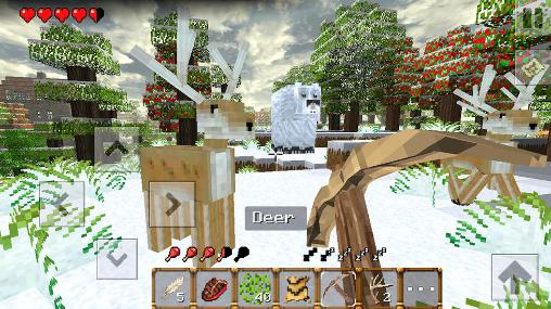 Explore a world made up of blocks and covered in eternal ices. Construct various buildings and craft useful objects. Try to survive in a huge harsh world of this game for Android. Embark on a journey through the snow-covered lands. Look for helpful resources that you'll need to build houses, crate weapons and tools. Hunt wild animals to get food. Fight evil predators protecting your land. Get a pet that will help you in your travels.