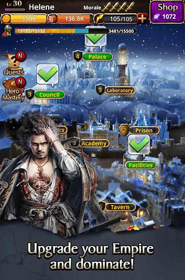 Fight other powerful lords for the throne of the kingdom. Capture enemy cities and expand your territory. Bring peace to the war-torn land in this Android game. Build your own empire and protect it from enemies. Restore the country, gather necessary resources, and develop cities. Hire legendary heroes who can lead your troops and help manage the kingdom. Unite with other players to defeat strong bosses and fight for the world domination.