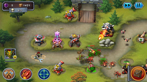 Head an army of goblins and use the inventions to defend the kingdom from the cunning enemy. Build turrets and towers on the way of your enemy. In this game for Android you'll have to defend against superior enemy forces. Fortunately you have cunning goblins fighting on your side who have excellent knowledge of mechanics and have secret knowledge. Use goblin technology like powerful cannons and defensive towers. Place them on the battlefield. Upgrade your towers, increasing their firepower. Control brave heroes.
