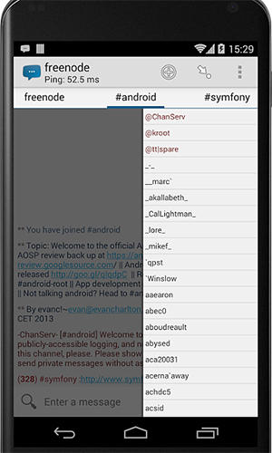 Download the app of AndroIRC for your android smartphone. This AndroIRC app free download is a Misc app and has a size of 2.5 MB. It is a AndroIRC apk file and you can install it on your android phone via free download from this page. It supports all latest android devices including android tablets and android phones like lollipop and marshmallow.