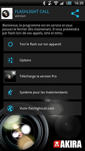 Notifications about missed events by means of flashlight of Android device camera. A user can set up frequency of flashes, time between chains of flashes and other functions.