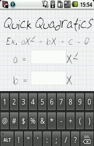 Download the app of Quick quadratics for your android smartphone. This Quick quadratics app free download is a Misc app and has a size of 172 KB. It is a Quick quadratics apk file and you can install it on your android phone via free download from this page. It supports all latest android devices including android tablets and android phones like lollipop and marshmallow.