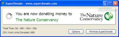 Donating to charity with SuperDonate is simple and safe. After installing the application, you simply choose the charity you want to earn money for. You can now minimize SuperDonate to a tiny icon and it will continue working in the background. Since SuperDonate only activates when your computer is idle, you will notice no difference in the performance of your computer.Every day millions of computers are powered on but idle, wasting energy while performing no useful work. When your screensaver is running, only a tiny percentage of your computer's processing power is actually being used. SuperDonate lets you donate this idle computing power to help solve complex research projects, and in return earn money for charity.