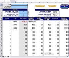 The Bond Yield Calculator for Excel or Open Office Calc enables the automatic generation of scheduled bond payments and the calculation of resulting yield to maturity. The bond yield to maturity calculator is designed to handle odd first time periods and is ideal to analyze bond payment schedules and yield to maturity calculations. The Bond Yield Calculator assists with input by providing automatic schedule creation and embedded help prompts. The number of decimal places can be specified to yield to maturity calculation. The automatic schedule includes cash flow, discount and principal outstanding for the bond schedules. A solving algorithm is employed to calculate the bond yield to maturity. The Bond Yield Calculator contains both an Excel and Open Office version with open source code for customization and compatibility across operating platforms. Similar Software