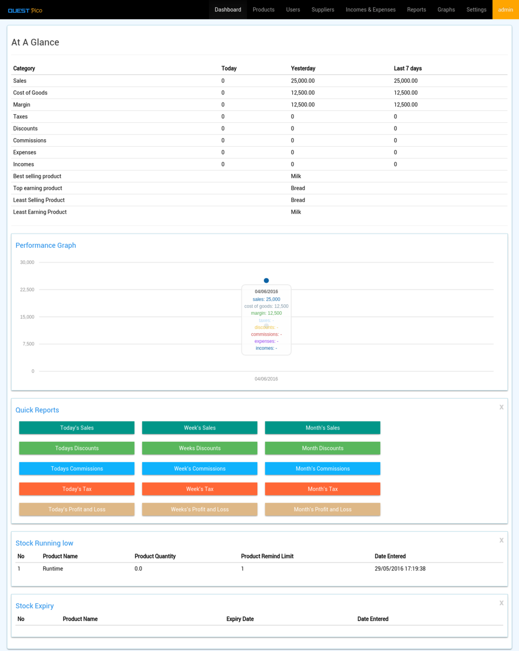 Quest POS also enables you to track the perfomance of your employees and offer them commissions based on their perfomance. Quest POS also enables you to easily track tax information for your products, easily offer discounts on any products at your own convenience.