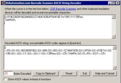 This is a free software application that reveals hidden, non-visible commands in addition to ASCII characters from keyboard emulation devices, such as a USB Barcode Scanner. This barcode decoder application is especially helpful in determining if non-printable ASCII commands such as FS, RS, GS, and EOT have been encoded in a barcode symbol. Similar Software
