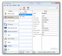 PassDirector is a single-user personal database for sensitive personal data (bank accounts, credit cards, email accounts, serial numbers, web passwords or any other sensitive information). PassDirector uses strong, high secure Blowfish encryption (up to 448 bit). The password is not stored in the computer, it cannot be retrieved by any way, it is used only when it is entered after starting PassDirector. The password must be remembered carefully. If it is forgotten, it will not be possible to retrieve the data and they will be lost. Encrypted database data are stored automatically, it is not required to open or save any file. The data are stored in the home folder. Available for Windows, OS X and iPhone. Similar Software