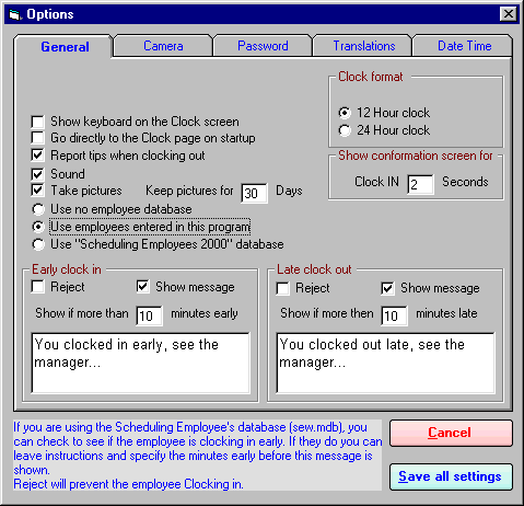 Optional lookup in to the Scheduling Employees 2000 (Sew.mdb) database for employee ID, names, schedules etc.