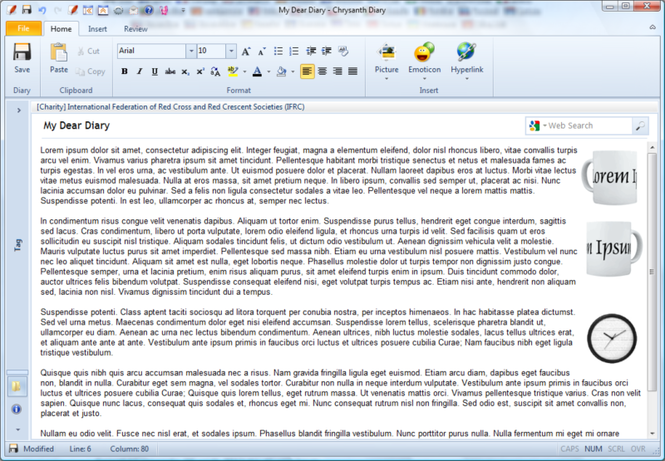 You can create your diary entries in the WYSIWYG editor that resembles MS Word 2010, and the best thing is that Chrysanth Diary organizes all the diary entries in a powerful and easy to understand way. This diary software requires a negligible learning process but produces high level results immediately.