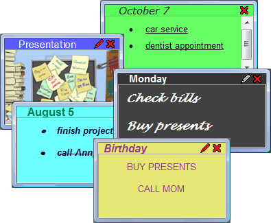 Sticker Lite is sticky notes freeware for Windows that helps you record, keep and manage important information, dates and events on your computer desktop. Sticker Lite is a great tool to organize information or just write down ideas and thoughts using desktop sticky notes. With Sticker Lite you can create desktop sticky notes to keep all necessary information at your fingertips, easily organize sticky notes on your desktop and even send sticky notes over a local network and online. The appearance of sticky notes is highly customizable - you can change sticky notes color, background image, font, size, transparency. Similar Software