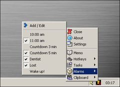 Easy to use alarm clock to set alarms/reminders that can display messages,play sounds/music, execute programs, run system commands, reboot/log out,